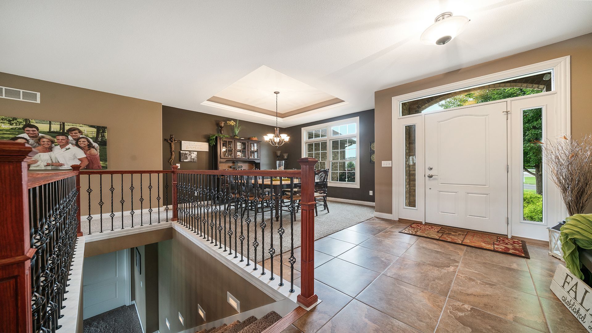 It's rare for a home like this to come back on the market. And with a price drop, it's an opportunity you don't want to miss! This stunning, immaculately maintained executive home is set on more than one professionally landscaped acre with manicured grounds and exceptional curb appeal. Offering 5 bedrooms, 3 full baths, and a heated extra wide 3-car garage with epoxy flooring and built-in cabinets, this home has it all. The main level boasts new carpet(2023), a formal dining room with tray ceiling and transom windows, and a spacious family room (tray ceiling) with a gas fireplace and tile surround. The gourmet kitchen features cherry cabinetry with crown molding, granite counters, a breakfast bar seating four, staggered cabinets, a wine fridge, metal backsplash, and a 5x5 walk-in pantry.(Refrigerator not included; dishwasher new in 2023.) A large dinette with deck access, mudroom with cubbies, arched openings, rounded corners, and central vac with dust panfeature add to the thoughtful design. The luxurious primary suite includes a tray ceiling with lighting, a spa-like bath with double sinks, granite counters, makeup vanity, walk-in tile shower, and expansive walk in closet. Main level laundry is oversized and functional. The lower level is ideal for entertaining, with 9' ceilings, a rec room featuring a stone wood burning fireplace, game room, workout room, spacious storage, and walkout access to a large patio. Garage door to utility room offers lawn mower storage area. A shared bath includes double sinks and a separate toilet and shower area. Convenient stairs to the garage add functionality. Outdoor living shines with a 24x15 composite deck (wood ceiling and fan), new hot tub (2024), firepit, Generac whole house generator, exterior lighting, and gorgeous landscaping. Additional updates: AprilAire (2017), water heater(2011). Don't miss this beautiful home combining elegance, comfort, and functionality in a serene country setting! Agent related.